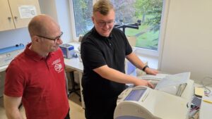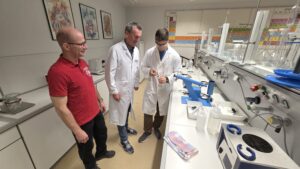 Die offizielle Übergabe der Glasscheiben fand direkt im Chemielabor des SBSZ statt. Herr Jacobs, Fachbereichsleiter Chemie, nahm die Sets dankbar entgegen und betonte die Bedeutung der Unterstützung: „Solche Kooperationen zeigen, wie wertvoll regionale Netzwerke für die berufliche Bildung sind.“
