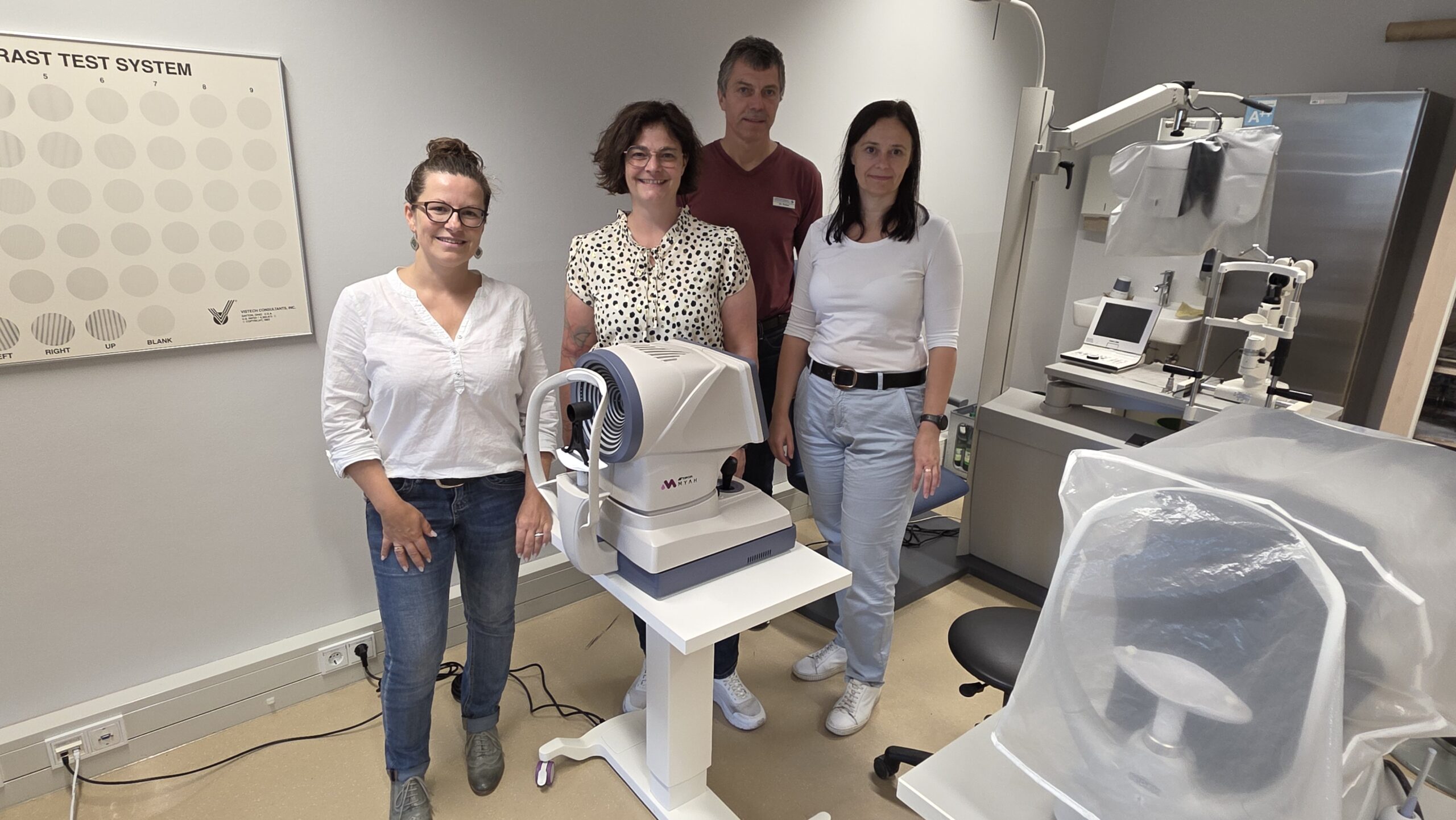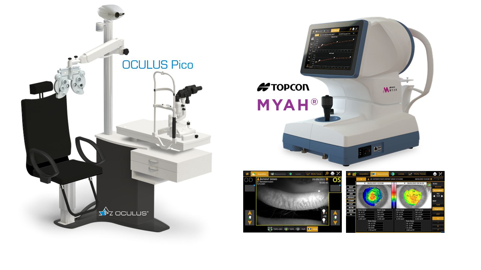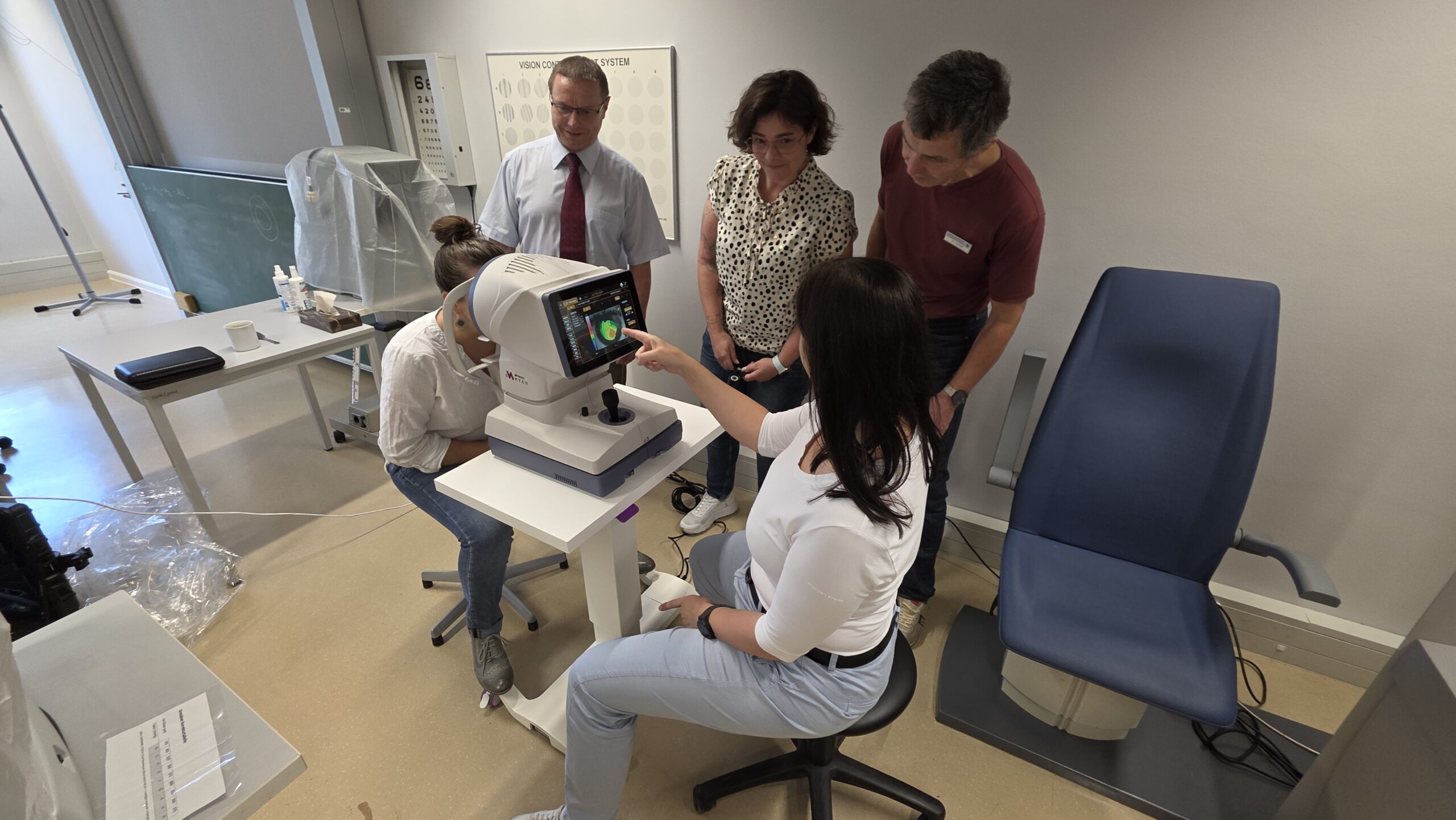 Am Mittwoch übergab die Firma Oculus das Gerät Oculus Pico an die Schule. Diese Refraktionseinheit vereint eine Spaltlampe, einen Phoropter und einen Projektor in einem kompakten System und ermöglicht präzise und effiziente Refraktionsmessungen. Damit wird die praktische Ausbildung der Meisterschüler auf ein neues Niveau gehoben. Am Donnerstag folgte die Übergabe des Geräts Myah durch die Firma Topcon. Dieses System ist speziell für das Myopie-Management konzipiert und bietet Funktionen wie: