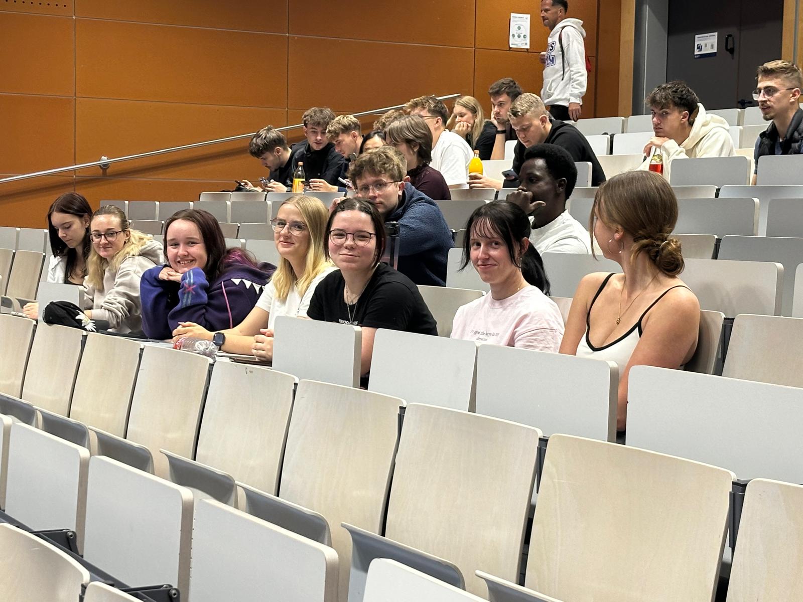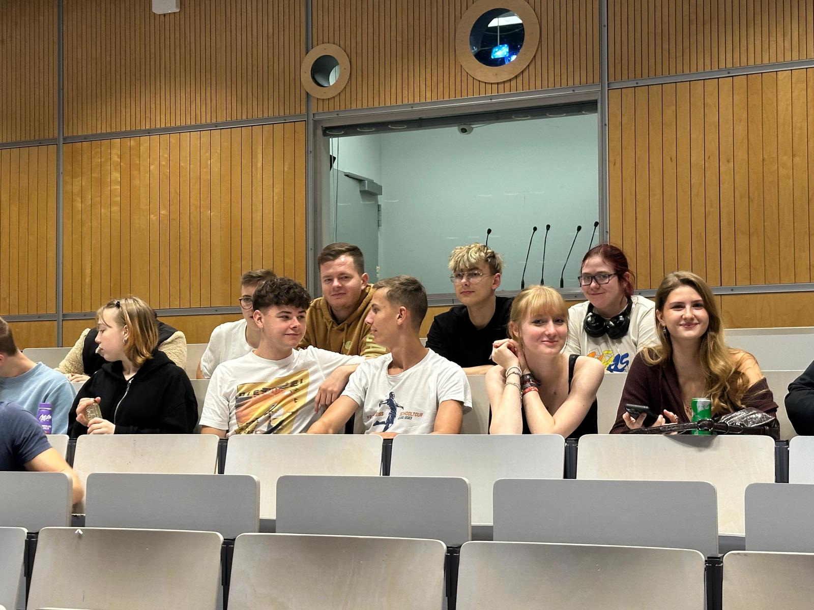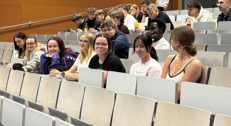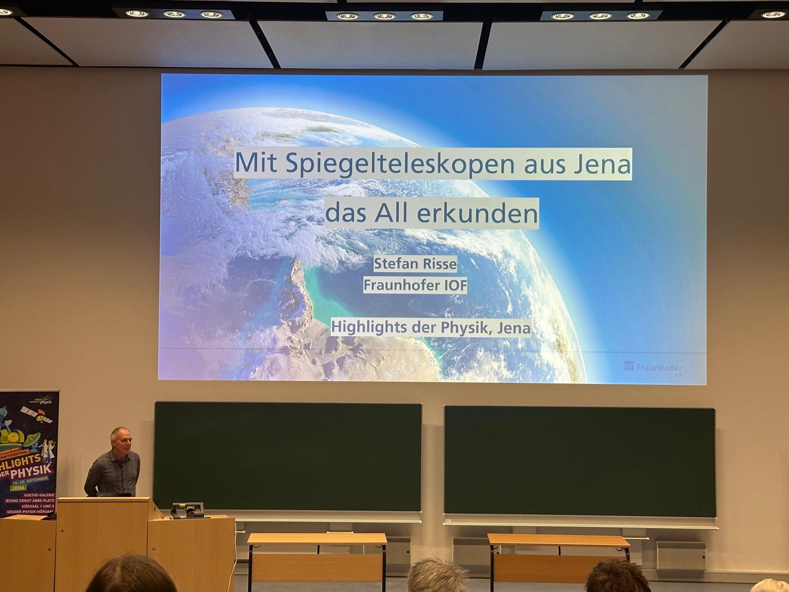 Am 19.09.2025 nutzten die Auszubildenden aus dem Bereich Feinoptik die Angebote der Themenwoche „Highlights der Physik“ und lauschten gespannt verschiedenen Vorträgen zum Thema Physik im Hörsaal 3 der Friedrich-Schiller-Universität. Wir starteten mit dem Vortrag „Mit Spiegelteleskopen aus Jena das All erkunden“. Dr.- Ing. Stefan Risse vom Fraunhofer IOF Jena erklärte den Zuhörenden die Anforderungen an Weltraumoptiken. Spiegelteleskope werden nicht selbsttätig in Betrieb genommen“, sondern müssen nach dem Start im Weltall entfaltet, kalibriert und mit den nötigen Instrumenten ausgestattet werden.