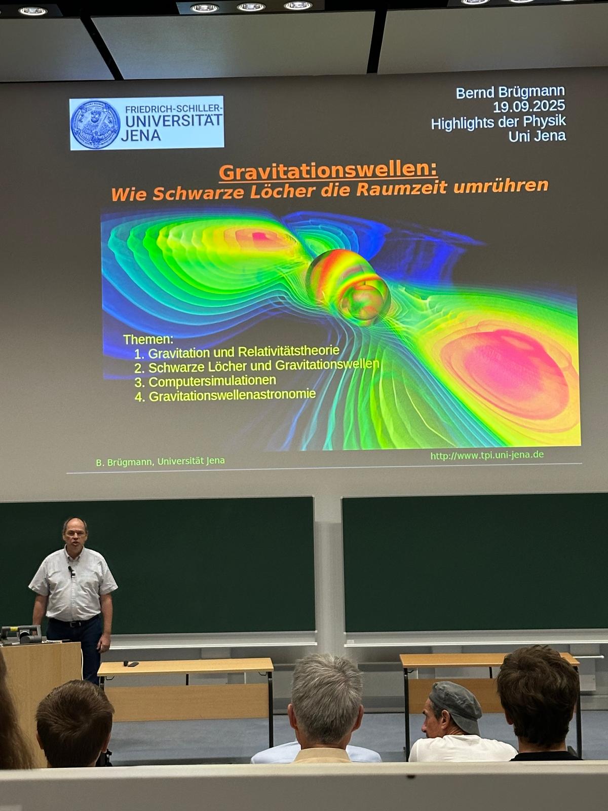 „Wie Schwarze Löcher die Raumzeit umrühren“ war unser zweiter Vortrag und wir waren sehr beeindruckt. Anschließend nutzen noch einige Auszubildende die Ausstellungen zu physikalischem Phänomen in der Goethegalerie in Jena.
