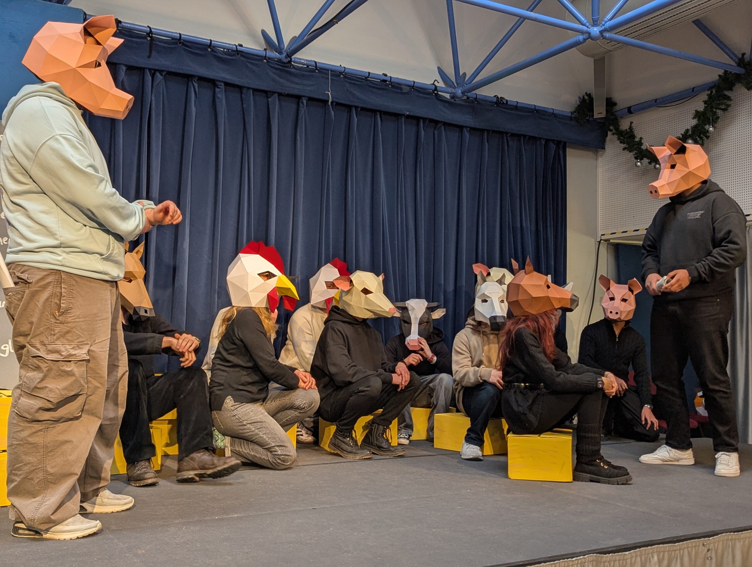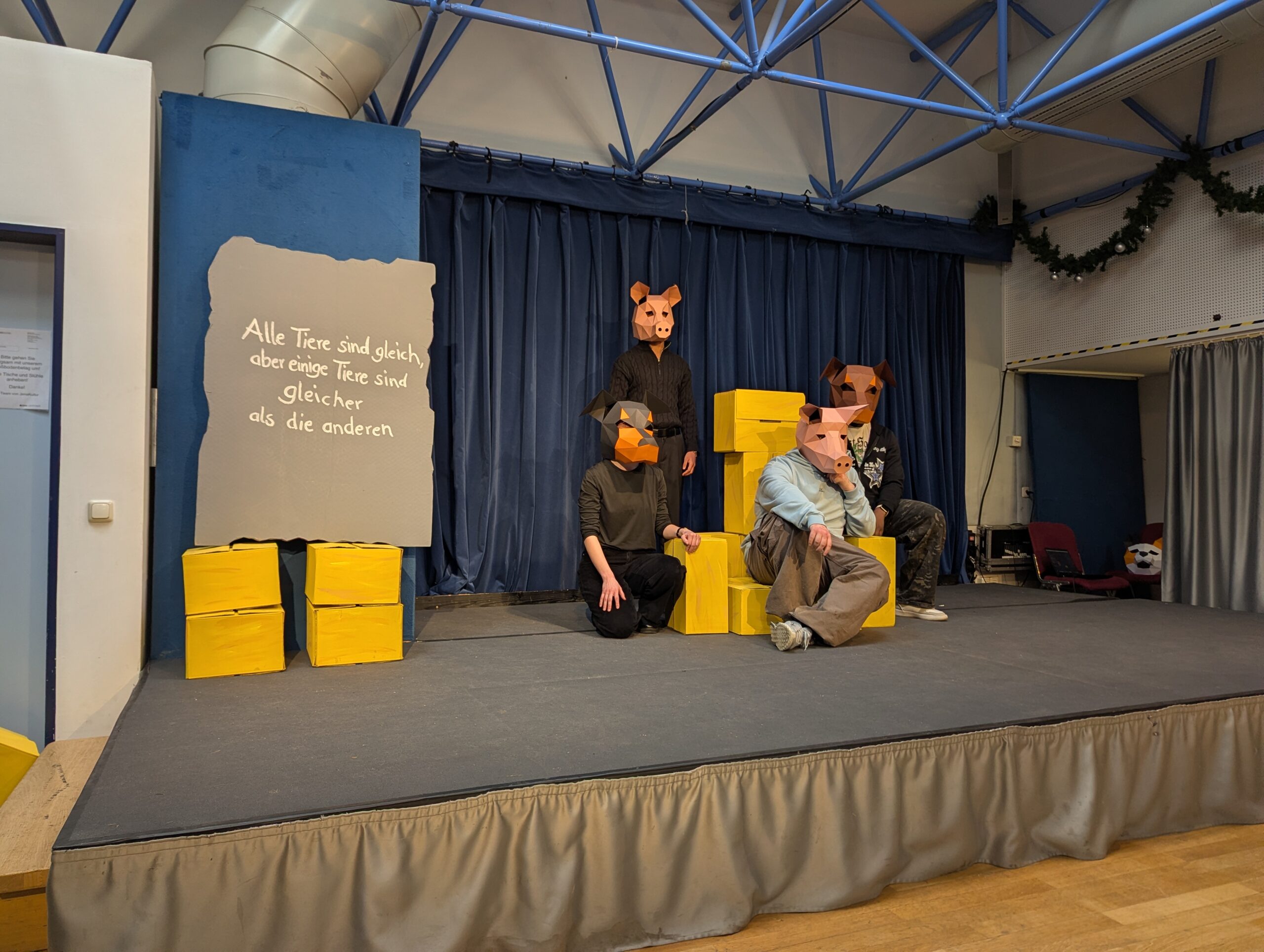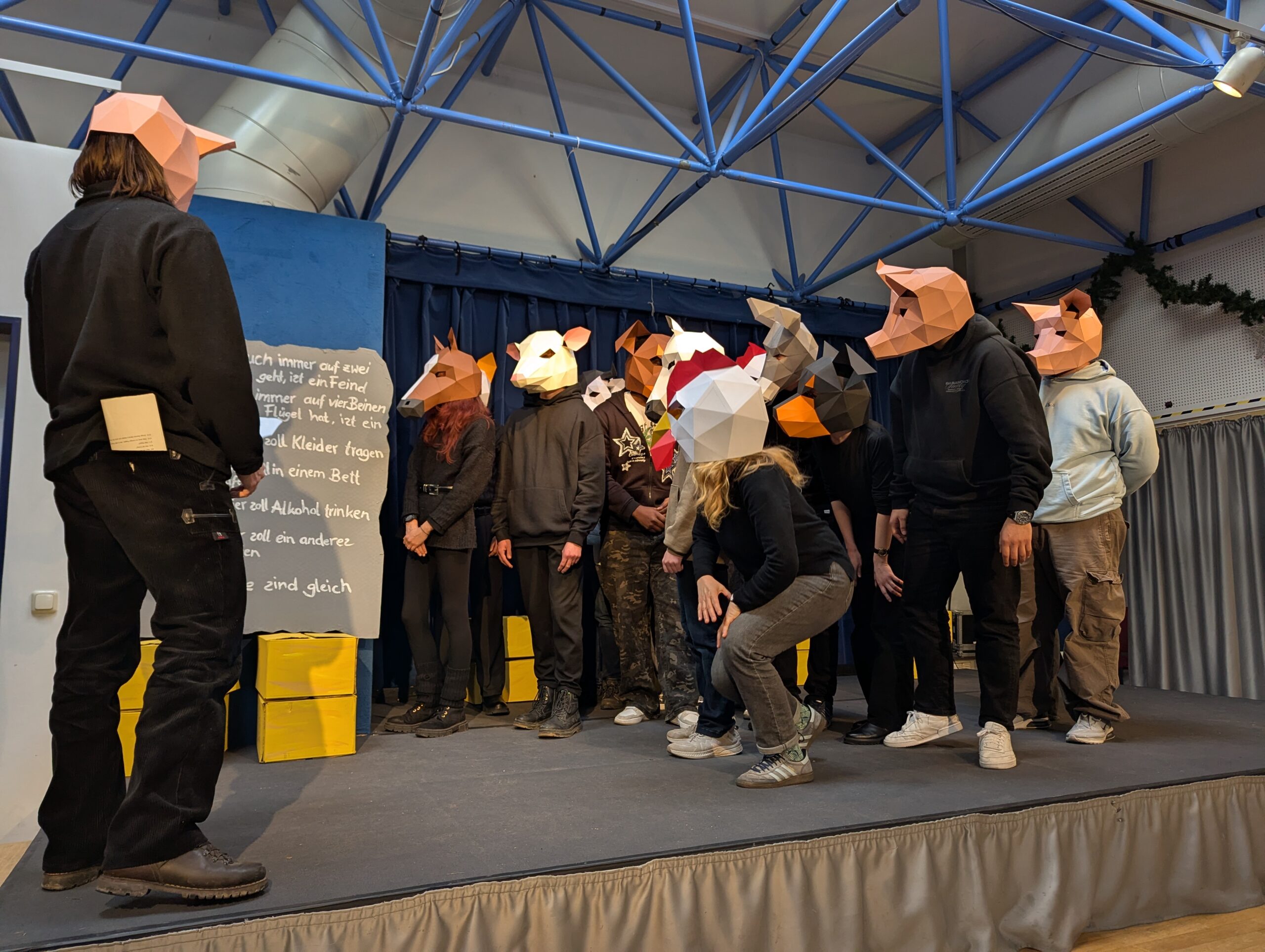 Mit großem Engagement und beeindruckender Bühnenpräsenz präsentierten die Schüler*innen der Klasse TAI25 (Technische Assistent*innen für Informatik) kurz vor Weihnachten 2025 den Klassiker „Farm der Tiere“ nach George Orwell. Die Aufführung fand im Stadtteilzentrum LISA in Jena-Lobeda West statt und wurde vom Publikum mit herzlichem Applaus gefeiert.