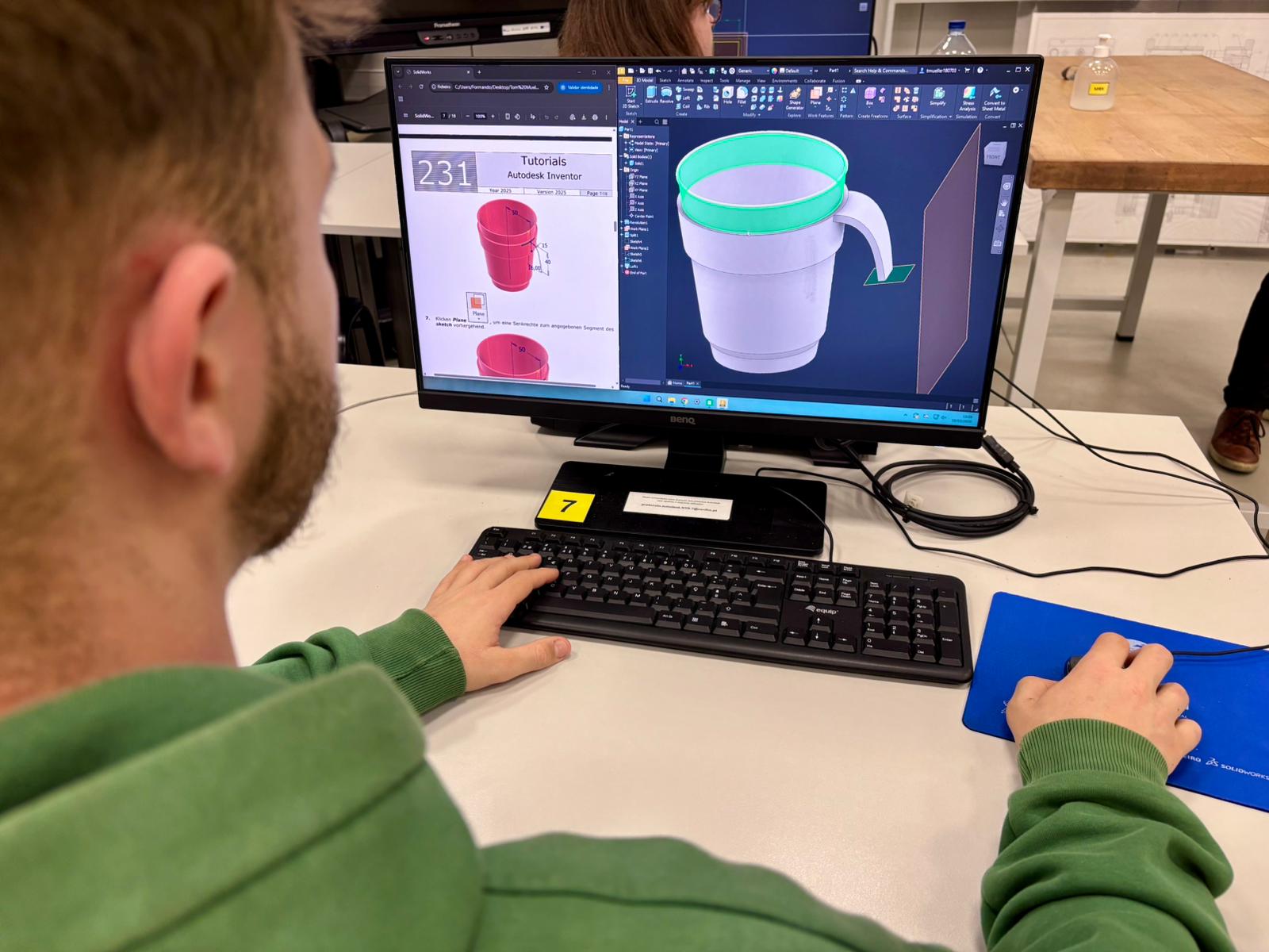 In der 2.Hälfte unseres Portugalaufenthalts verlagerte sich unser Alltag in das Ausbildungszentrum CENFIM in Trofa. Dort folgten wir einem Wochenplan, der Theorie und Praxis gezielt miteinander verband. Ein besonderer Schwerpunkt lag auf dem CAD-Zeichnen, bei dem wir unter Anleitung verschiedener Lehrkräfte unsere Fähigkeiten im technischen Zeichnen vertiefen konnten.